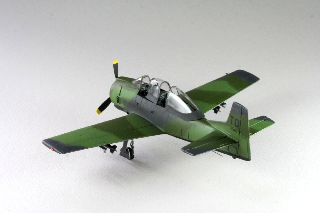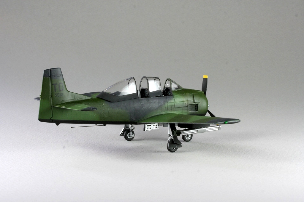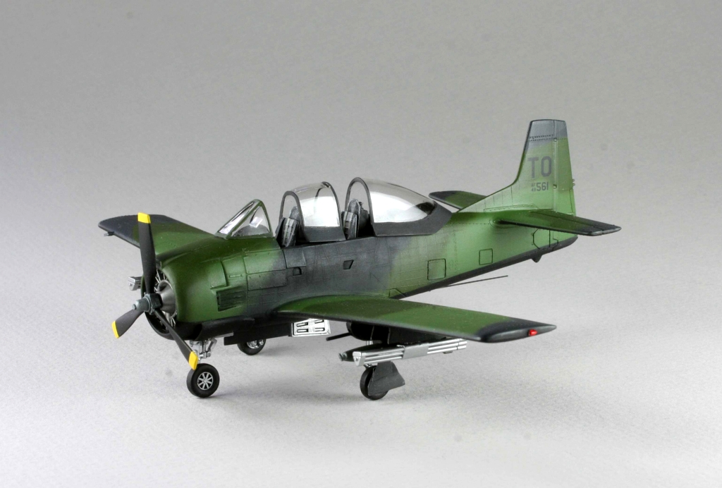 Decals (two on each side of the vertical stab) are from Wolfpak sheet 72-044 (Thunder and LITENING), marking the Trojan as an aircraft from the 606th Air Commando Squadron, Nakon Phanom (NKP) Royal Thai Air Force Base, Thailand, 1967-68. Per the Wolfpak info sheet, these aircraft, using the callsign “ZORRO,” worked nights above the Ho Chi Minh trail; their specialty was southbound trucking.