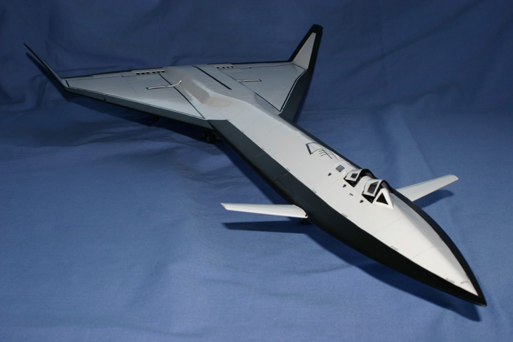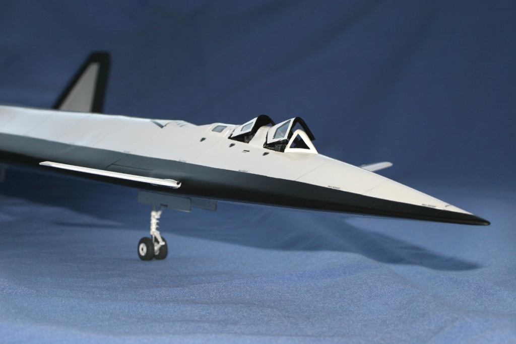 Now it’s time to spill the beans… I had been keeping this build quiet to surprise Haydn – I’d actually been scribing the fuselage halves the weekend before the 2005 Scale Modelworld! By the Thursday evening, I’d got the painting finished but quickly realised that there was no way I was going to get it completely finished in time! Since this was a “black” project, I theorised that it would have limited markings, and for the purposes of the Nationals I assumed it would have been trialled with no markings at all! So I concentrated on getting the undercarriage on and the gear doors in place. Taking this approach meant that I was able to get it into it’s lair (i.e. the large box normally used to transport my NB-52E!) by Friday evening.