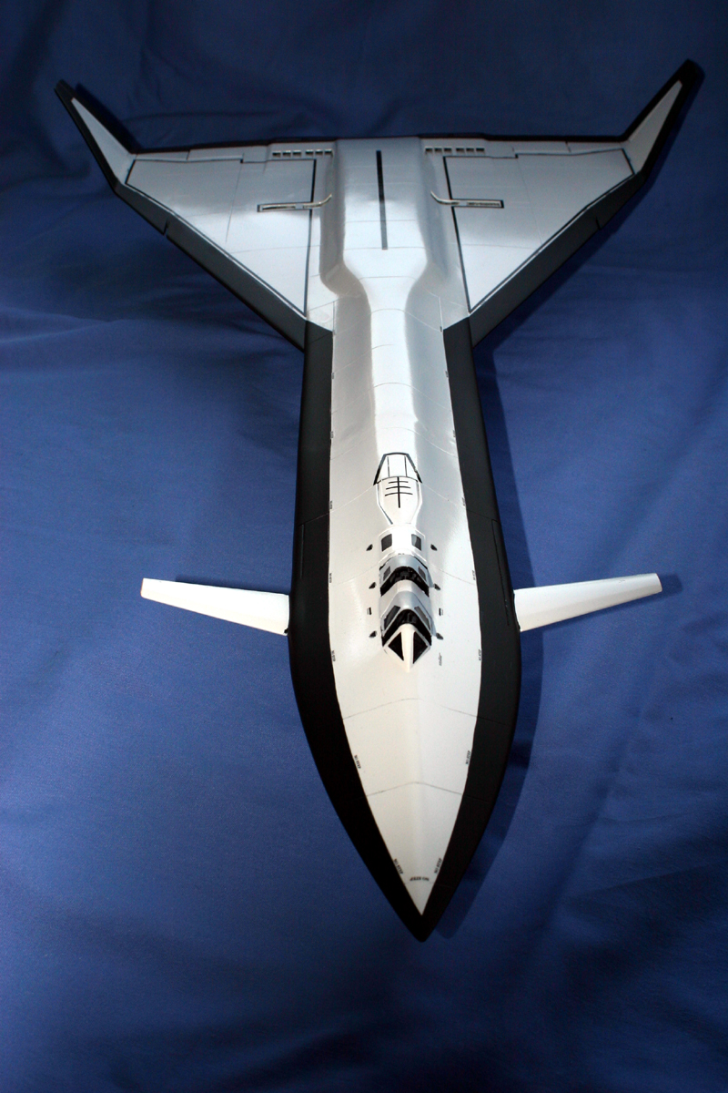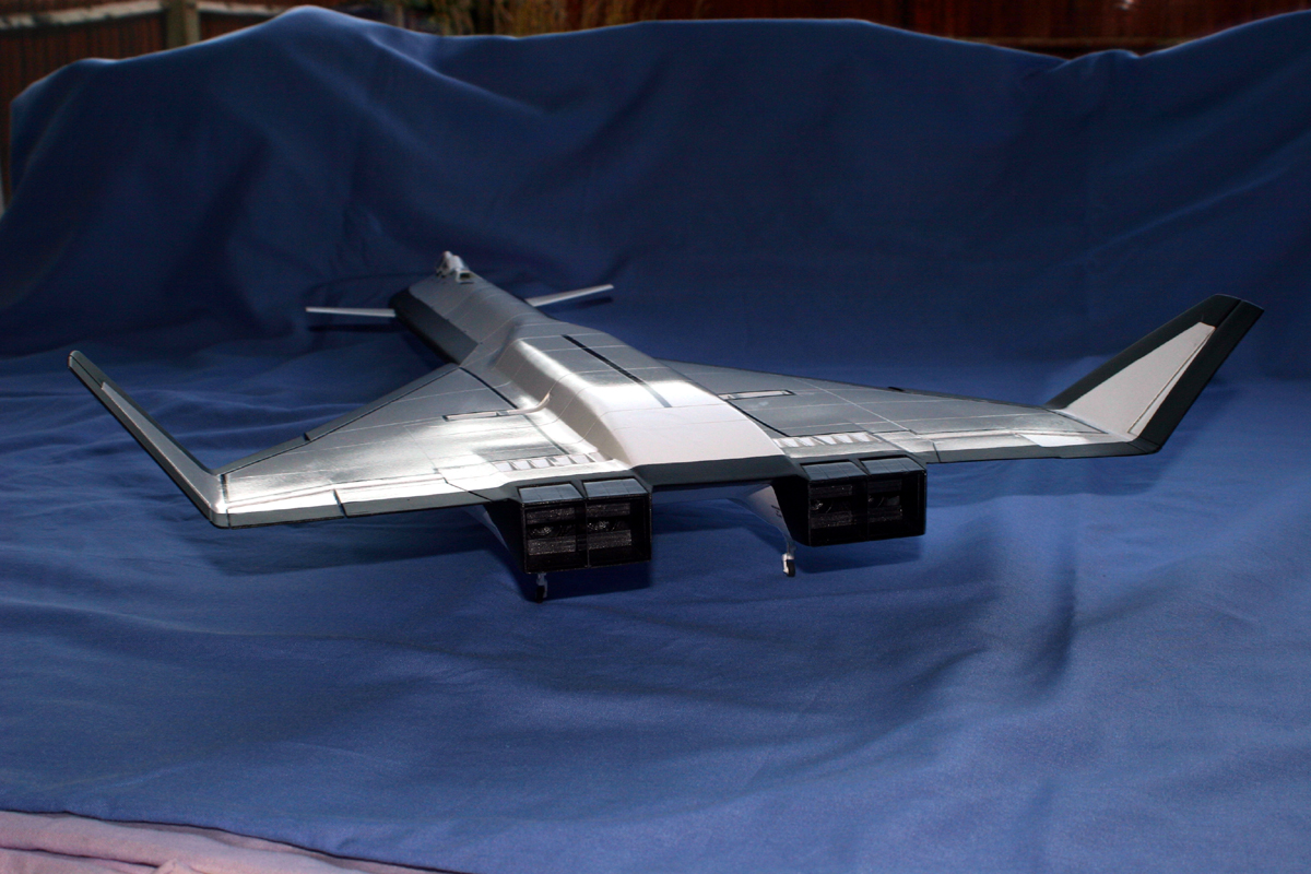 So where did Testors get their inspiration from?? Well… Since the early 1990’s there have been reports of unknown large aircraft over the US – the first of these coming from Nevada and the Antelope Valley region of California in 1990. The aircraft spotted was described as being around 200 feet long and resembled the XB-70 with a large delta wing, tip-mounted rudders and large underwing engine pods. It was white (or light gray) overall with black leading and trailing edges. Various other sightings were made and a large “SR-71-shaped” forward fuselage section was spotted being loaded onto a C-5 galaxy at Lockheed’s Skunk Works – it was headed for Boeing Field in Seattle. Strange “donut-on-a-rope” contrails were also sighted on a number of occasions and it was thought that these were symbolic of a Pulse-Wave-Detonation-Engine (PWDE).