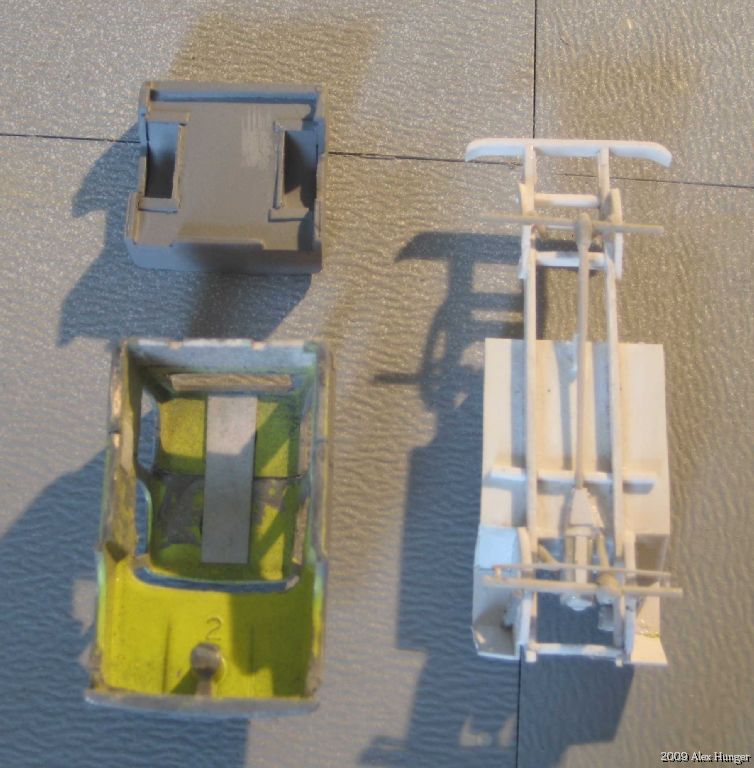 The final problem proved to be the cracked sickly green glazing from the Matchbox kits. In the end, I had no choice but to trim the best one to size and use it for the front of the cab and windshield, leaving the rear sides open. Clear plasticard served for the flat rear window, as this was an easy shape to replicate. The cab is not glued to the chassis and at a later stage I may develop the courage to vacuform my own windshield.