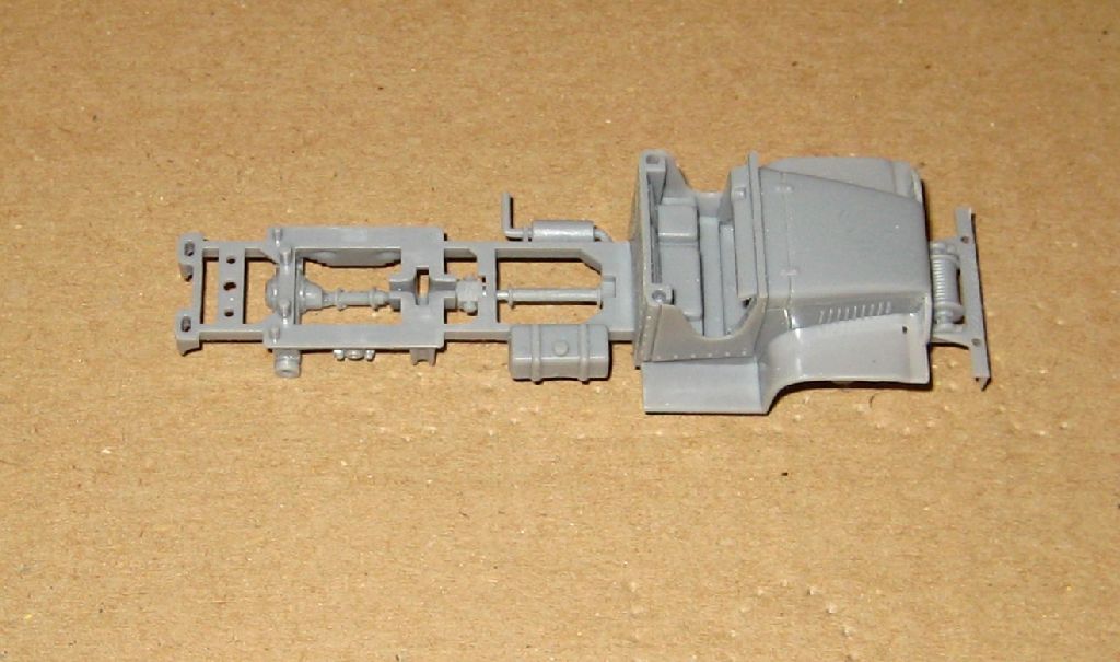 The frame and drive train went together well. The only idiosynchrosity was the middle axle, were part of the metal axle remains visble. This remains invisible when the truck is on its wheels, so I won't worry about it and any accuracy issues.