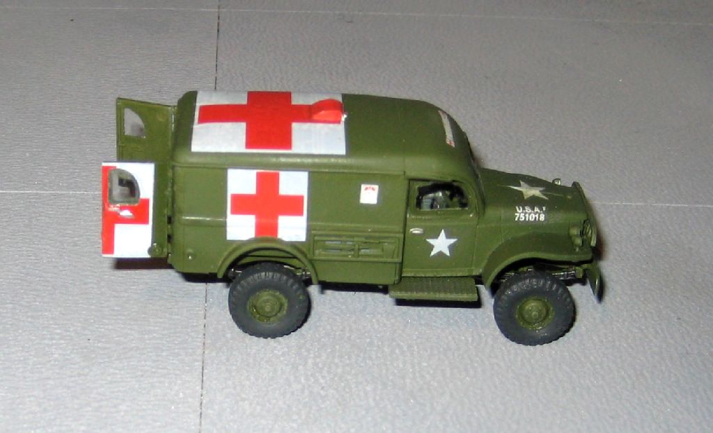 The proud Dodge ambulance can now be placed on the side of your airfield, ready to medevac the pilots of aircraft returning from Mig Alley with holes in them.