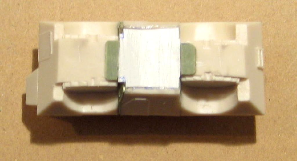 I just needed to take the body section and draw pen lines on the front and back of the passenger compartment, as limited by the small upright glacis plates. I stuck a thin rotary saw blade into my trusty old Minicraft drill and cut around the entire model, effectively slicing it into 3 parts at first. The inside front and back were cleaned up a little to smooth out the cut marks. I then took the center section and again drew pen lines just inside of the side of the angular hull. The sawed section required a bit more cleaning up due to the inconvenient angles, but there were no major problems. From the cover art, I could tell there was a hatch to the engine compartment and I assumed it would be possible to discern the panel lines for the 2 doors on the inside. These were loosely carved into the resin without much of a fuss. I assumed there would be some sort of hatch on the front, but can not prove this as there is no information on the web on the interior this version. I then superglued the sides back to the front of the hull. Between the center section and the rear section, I attached a couple of small strips of plasticard in order to make up the material lost during the dissection.