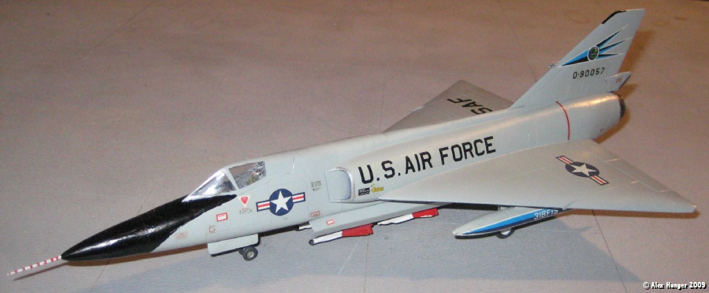 So, in total, I now have a completed fleet of 5 completely different F-106 Delta Darts, using what would politely be called 4 junk kits. While some would argue, that the Hasegawa Kit is long in the tooth, it’s simplicity and solidity make it a viable candidate for new builds and rebuilds, if super-detailing is not required, as only the panel lines need recarving. A clean paint job and nice decals are most effective for a colourful fleet of the Dagger. Repairing mouldy old kits is also a viable solution for generating nice new models for the collection.