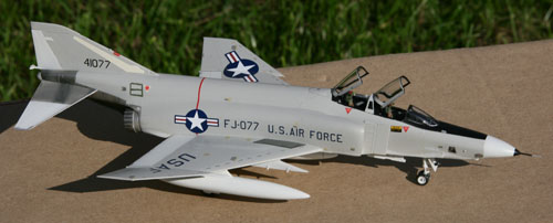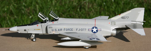 Using a standard new style Hasegawa RF-4C kit I have produced this model from the 10th TRW from RAF Alconbury as seen in 1978 from a photo I found on 5057 Phantoms gallery. This is done in the original Gull Grey and White scheme as when delivered. The photo looks like it has some sort of sealing tape around the photoflash ejectors on the rear of the aircraft, which I have simulated with some paint.