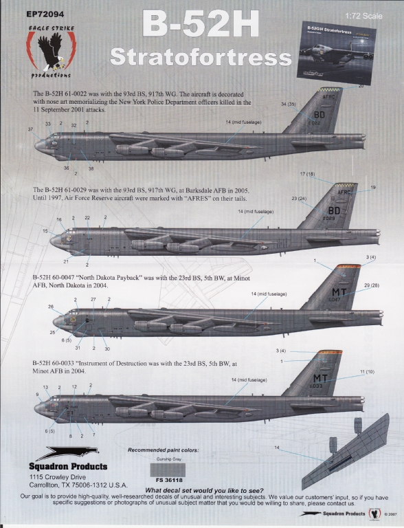 - B-52H 60-0047 "North Dakota Payback" of the 23rd BS, 5th BW at Minot AFB in 2004;