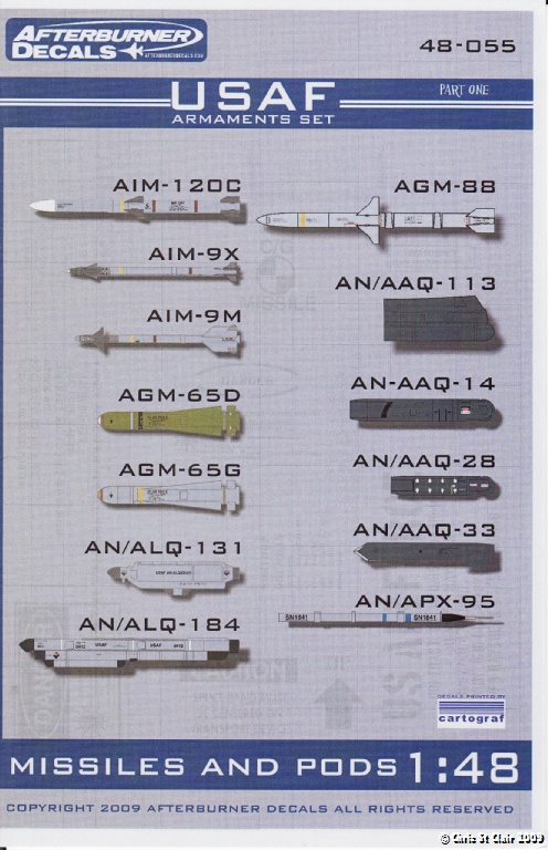 This is a fantastically useful sheet from Afterburner. Whilst it is not to 1/72nd scale, it is a good reference source as it contains details of markings for the above missiles and pods.