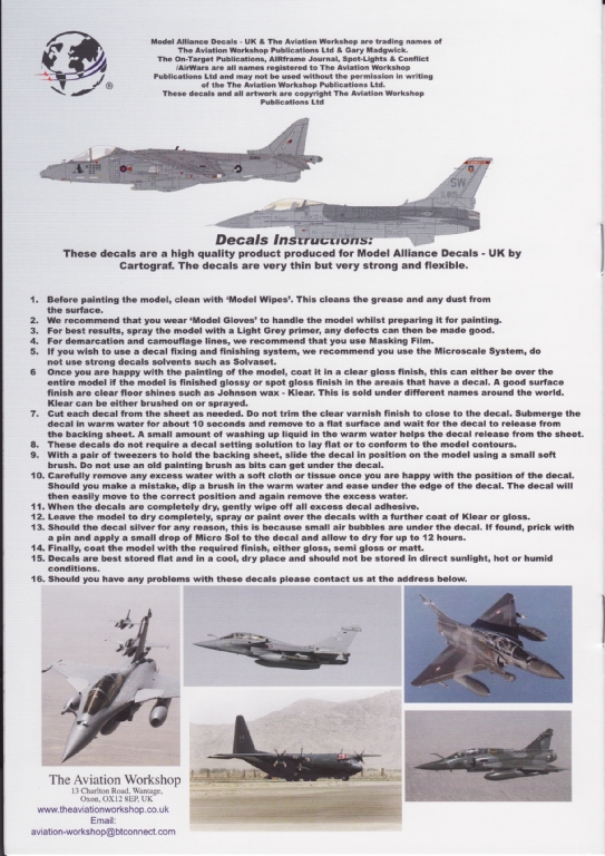 Model Alliance tend to focus mainly on UK aircraft, but have now started to branch out into other subjects. Whilst there is little on this sheet for USAF modellers, I did notice that it covers a USAF F-16C, so picked it up anyway!