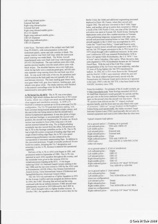 - A-7K 81-0074 "OH" from the 166th TFS, 121st TFW based at Rickenbacker AFB, Ohio during 1989. The aircraft is painted in the two tone grey scheme of FS26118 and FS26270