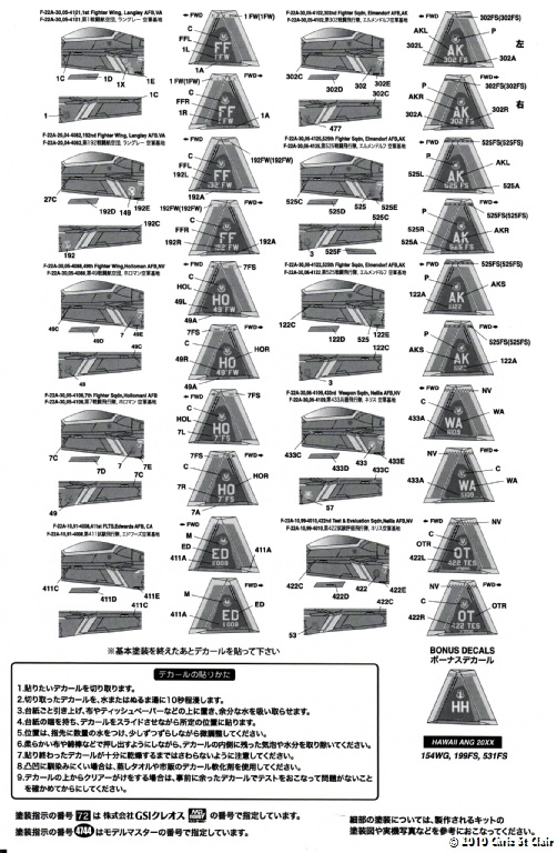 Other than a set of very small 4-view drawings showing stencil locations (of which there is very little on the Raptor), there are no other instructions, but these are easily available elsewhere.