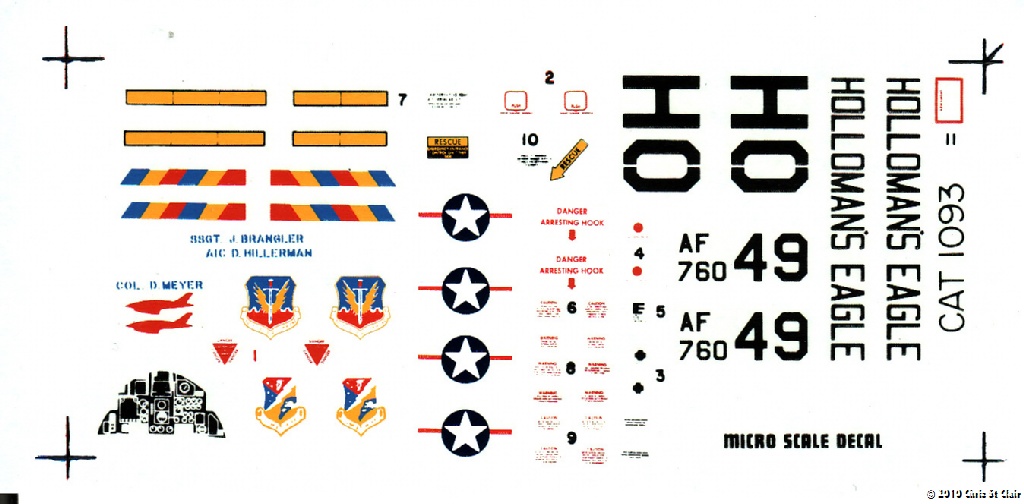 This is one of the original batch of Microscale sheets and covers a single subject - the first production F-15A Eagle 76-049. This was delivered to the 49th TFW and was known as "Holloman's Eagle". It carries the standard Compass Ghost Grey scheme of FS36320 and FS36373, with the "HO" tailcode in black and "HOLLOMAN'S EAGLE" in black on the nose.
