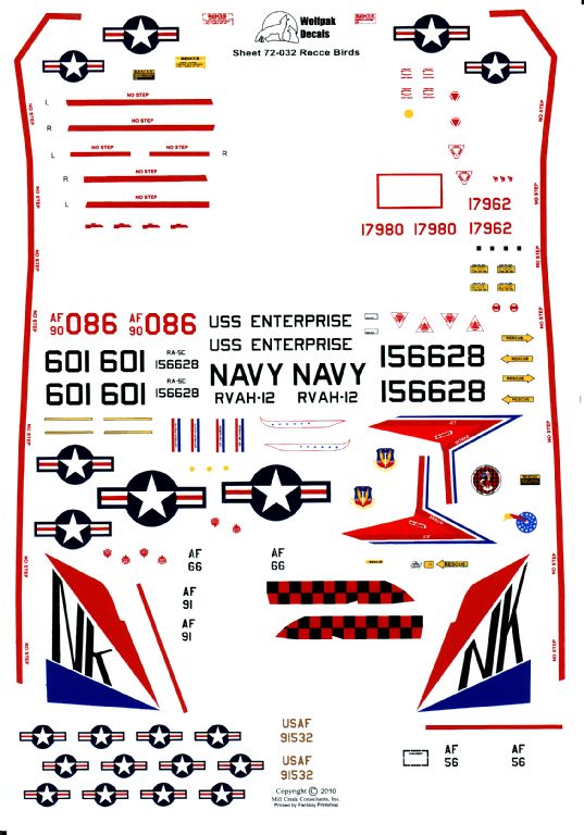 Sheet 72-032 "Recce Birds" from Wolfpak Decals covers a wide range of subjects, including the U-2R, RF-101C, SR-71A, RF-4C and C-130B-II:-