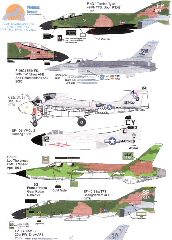 Sheet 72-031 from Wolfpak Decals covers a wide range of subjects, including the F-4D, F-105F and F-16CJ:-