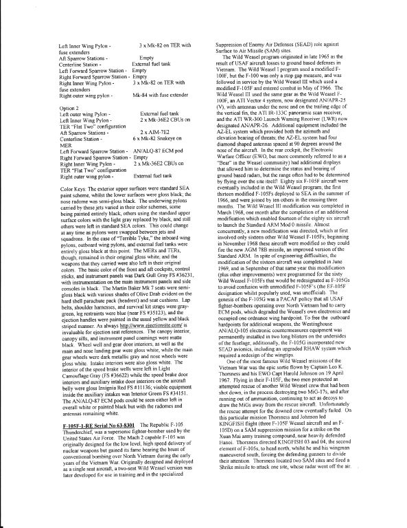 - F-105F-1-RE 63-8301, painted in the standard SEA scheme. This aircraft was flown by Captain Leo K Thorsness on April 19 1967