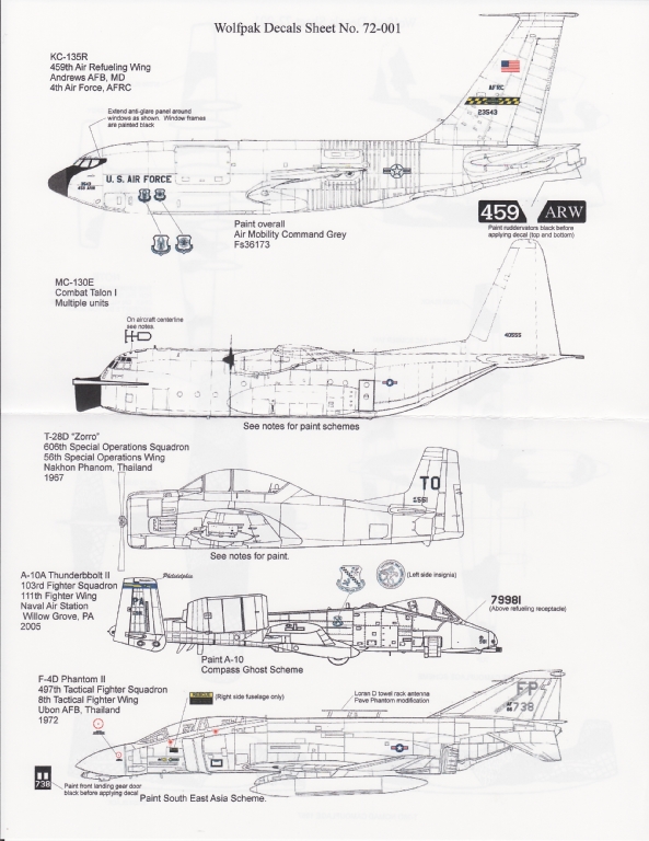 For each airframe, WolfPak include a side view with details of where individual markings are placed, copies of the relevant page of TO 1-1-4, and additional photographs where relevant. These are black and white photocopies, with the side views in colour.