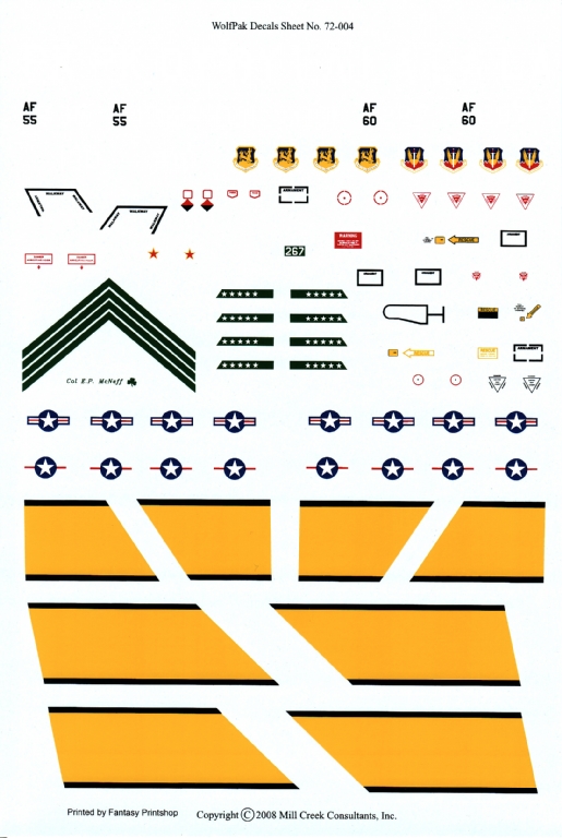 For each airframe, WolfPak include a side view with details of where individual markings are placed, copies of the relevant page of TO 1-1-4, and additional photographs where relevant. These are black and white photocopies, with the side views in colour.