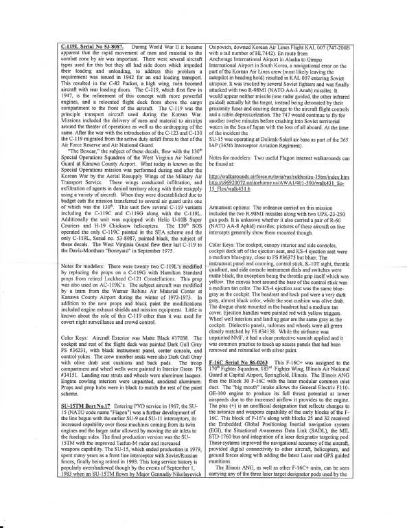 - Su-15TM Bort No 17 of the 365th IAP (365th Interceptor Aviation Regiment). This aircraft shot down Korean Air Lines Flight KAL 007 (747-200B) on 1st September 1983. The aircraft is is overall natural metal with dielectric panels painted in green (close to FS34138);