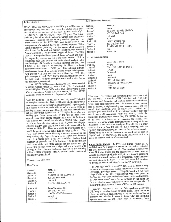 Additionally, for each airframe, WolfPak provide a history of the aircraft with additional details of markings and specific colours (with FS595a references). Details of weapons loadouts are also provided.