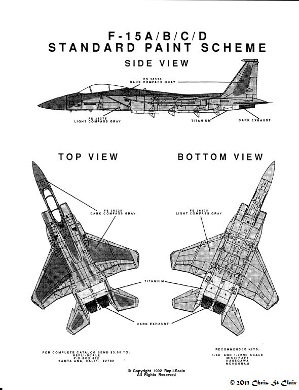 All of these aircraft are in the standard scheme of FS36375 Light Compass Grey with FS36320 Dark Compass grey on the upper surfaces. They all carry black "EG" tailcodes and a black stripe on the inner fins with an eagle's head.