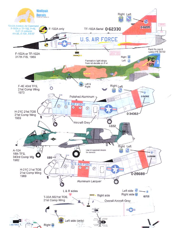 | Types Featured | F-102A,TF-102A,F-4E,H-21C,HH-3E,A-10A,EB-57E,T-33A |