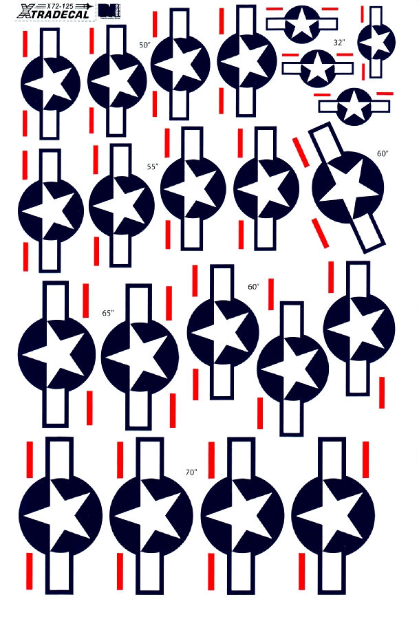 One of the latest releases from Xtradecal, this sheet provides a selection of US 'Stars'n'Bars'. The following sizes are included:-