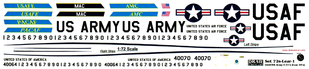A sheet from Draw Decal for a relatively obscure subject - USAF/US Army C-21 Lear Jets.