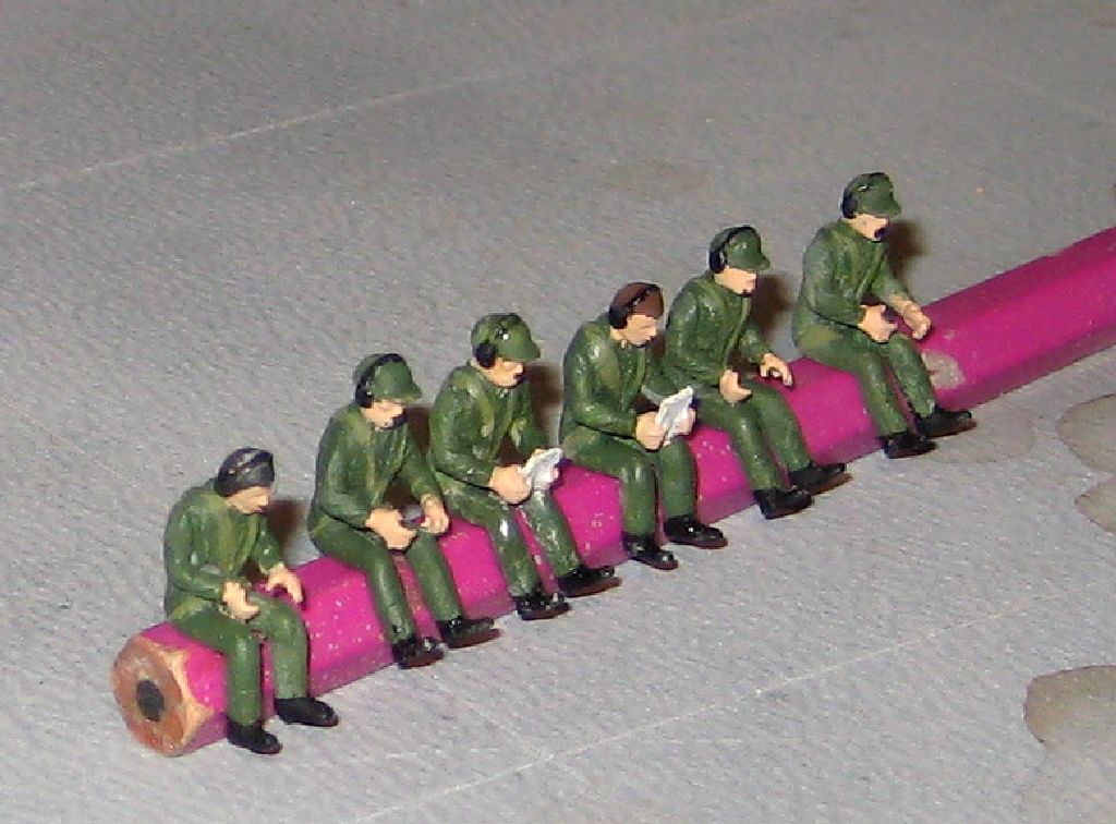 The figures are crisply moulded and look very representative. When sitting on a pencil, they tend to have a bit of a head down attitude, but look more lively in an aircraft. A better modeller might be able to paint the headset mikes a little more finely.