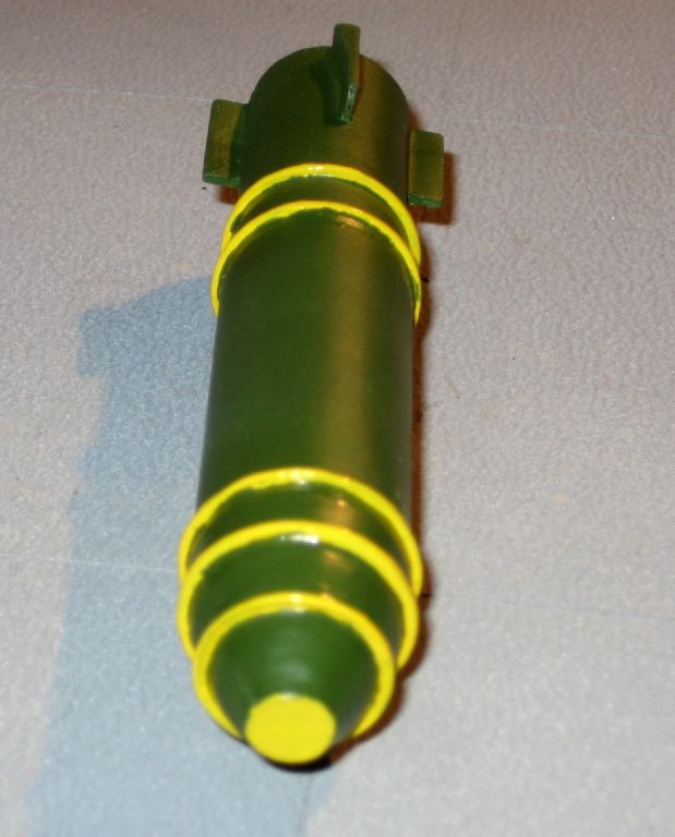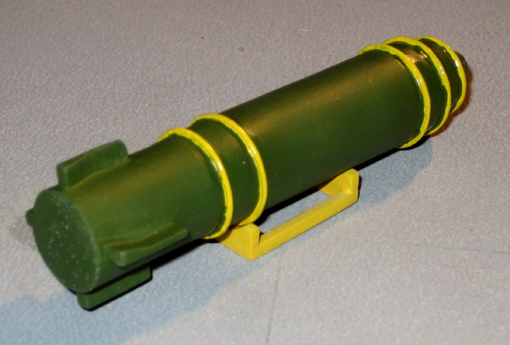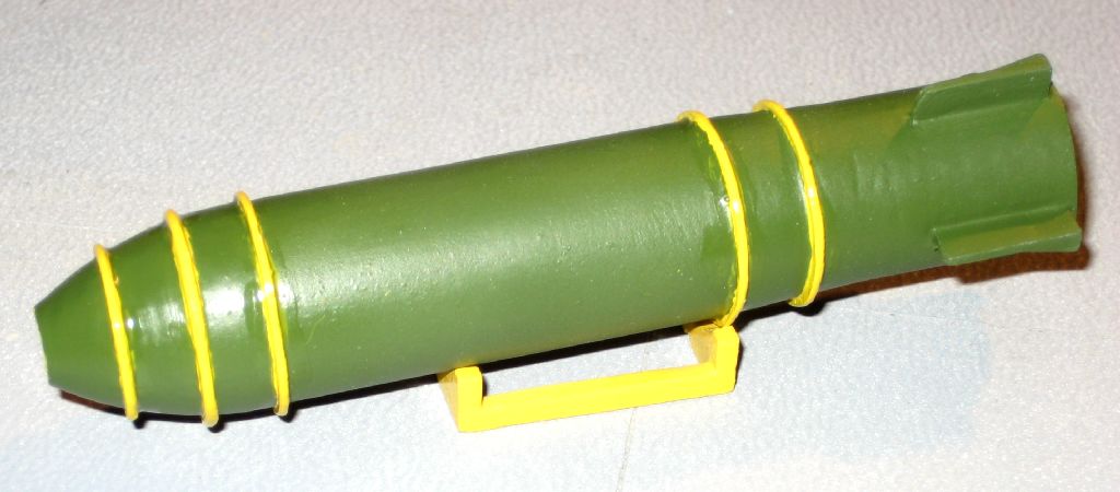 This MK-24 nuclear weapon from Spectre resins was built "Out of the bag," with just some minor cleaning up sanding. I painted it "interior green", as this most closely matched photos of the casing at the Los Alamos Museum. I'm resting it on a stand from the T-21 conventional bomb from 12 Squared., which was also used on the B-36. The MK-17/24 had a trailer which I may scratch build in the future.