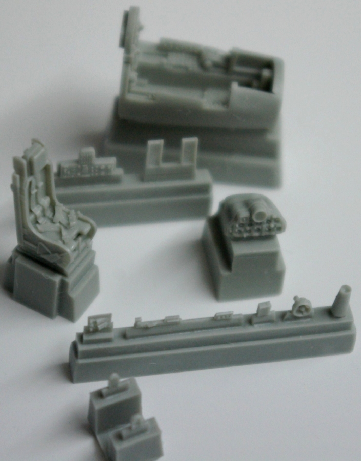 Beautifully cast cockpit enhancement set that contains an amazing amount of detail (a canopy de-fogging fan is even included !). As can be seen, the cockpit tub is a straight forward fit into the Airfix kit.