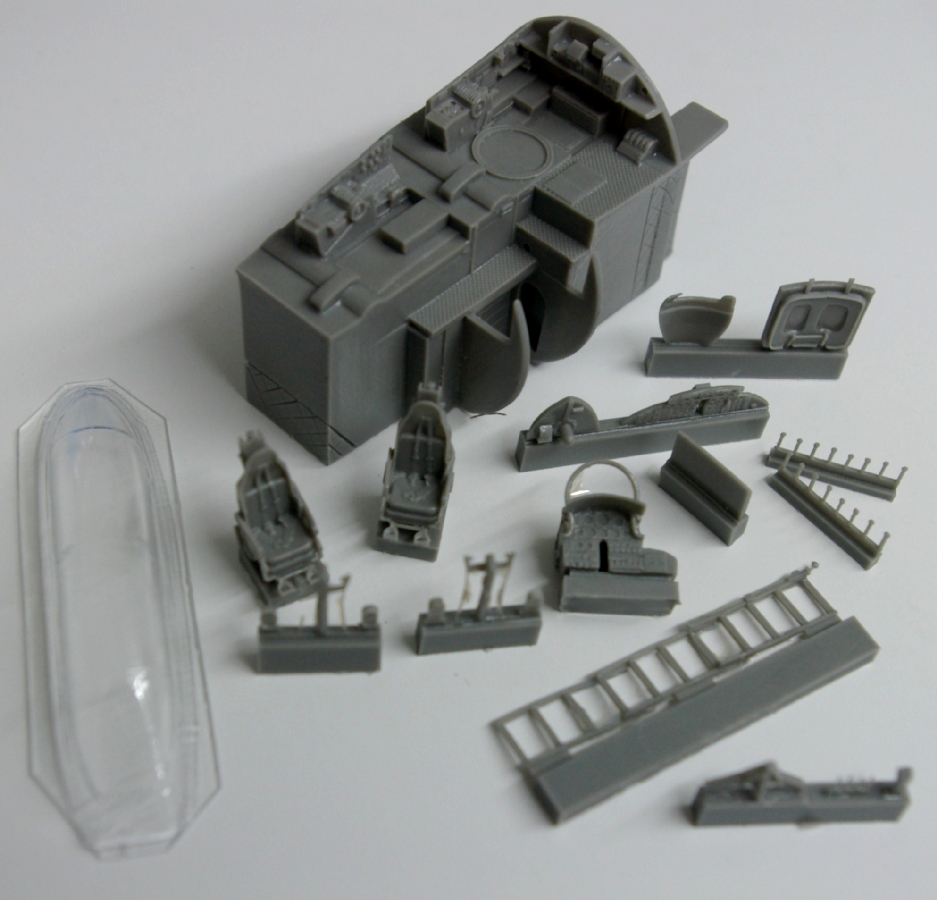 As can be seen from the pictures, the major cockpit structure is cast as a single part and requires quite a bit of resin to be cut away prior to fitting (the areas to be removed are marked with cross-hatching on the casting). The vac form canopy and ejection seats are available to buy separately in sets S72078 (Weber ejection seat for B-47E) and V72-102 (B-47E Clamshell canopy).