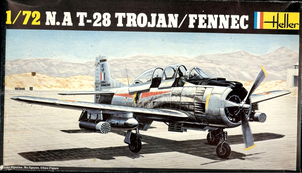 Here’s a $5 kit I picked up in the Omaha (2011 IPMS/USA Nationals) vendor room, the Heller T-28/Fennec converted to an AT-28D. Easy conversion; remove the airscoop forward of the windscreen, remove the pylons for the machinegun pods (replace with scratch built pods), add new pylons and weapons, add seat armor and a gunsight to the cockpit and separate the windscreen, mid and aft canopy sections. Yep, I know the canopy should be about 4 inches shorter, I’ll spot ’em that in 1/72!