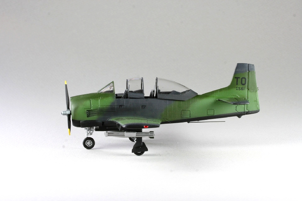 Decals (two on each side of the vertical stab) are from Wolfpak sheet 72-044 (Thunder and LITENING), marking the Trojan as an aircraft from the 606th Air Commando Squadron, Nakon Phanom (NKP) Royal Thai Air Force Base, Thailand, 1967-68. Per the Wolfpak info sheet, these aircraft, using the callsign “ZORRO,” worked nights above the Ho Chi Minh trail; their specialty was southbound trucking.