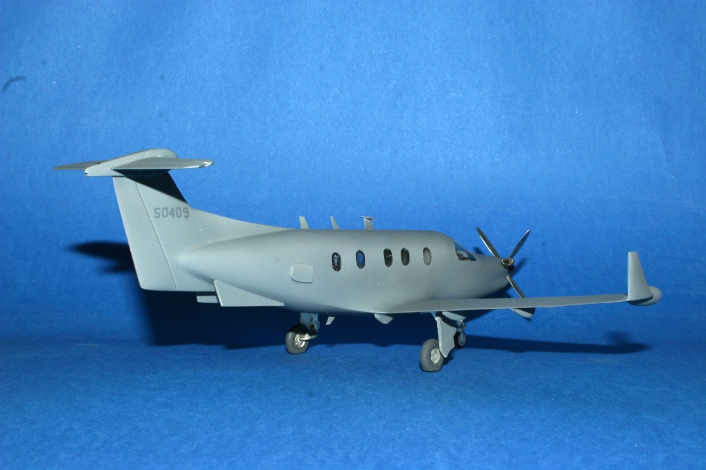 The U-28A has a simple scheme – overall gunship grey – and this made the painting stage somewhat easier than it could have been. I use Xtracolor paints which I spray at very low pressure (6-8psi) and mixed approximately 50% with thinner. After a couple of coats of Johnson Kleer, I applied the markings using a Two Bobs sheet which I’d had hanging around for some time. There are no markings other than the tailcode so this didn’t take too long! A couple of coats of Polly Scale Matt Coat and it was time for final detailing.