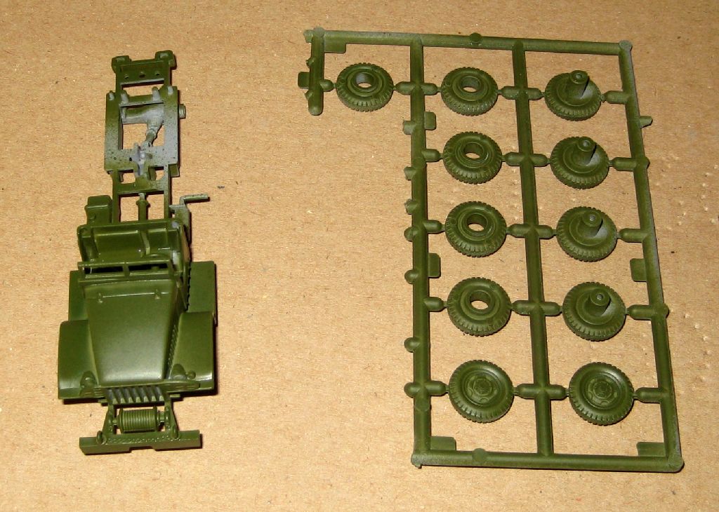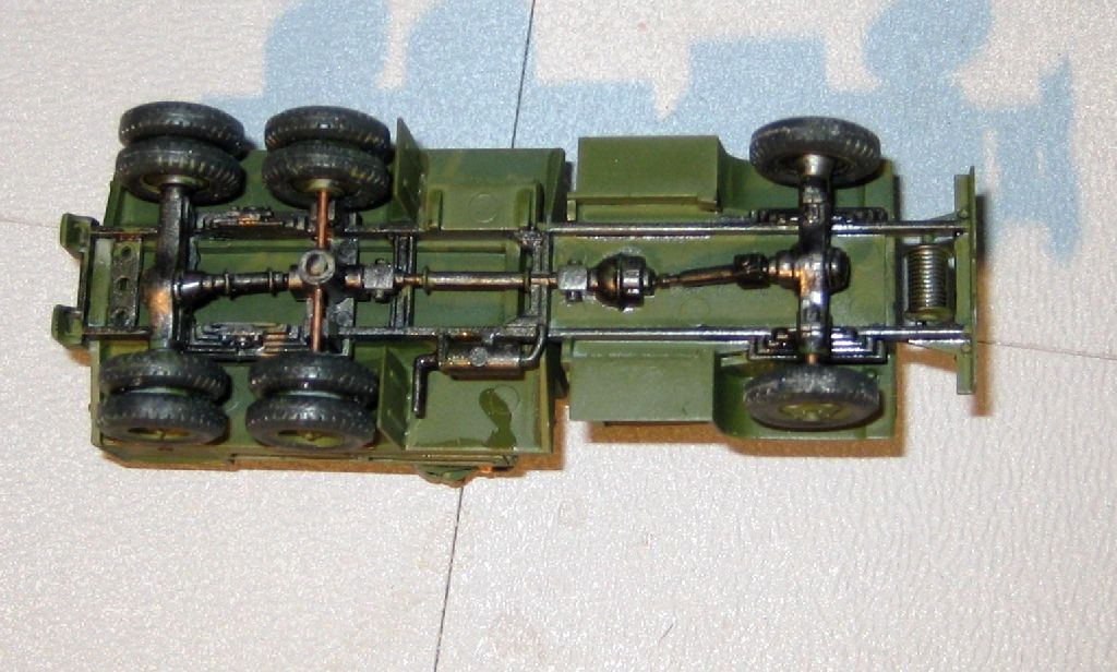 The frame and drive train went together well. The only idiosynchrosity was the middle axle, were part of the metal axle remains visble. This remains invisible when the truck is on its wheels, so I won't worry about it and any accuracy issues.