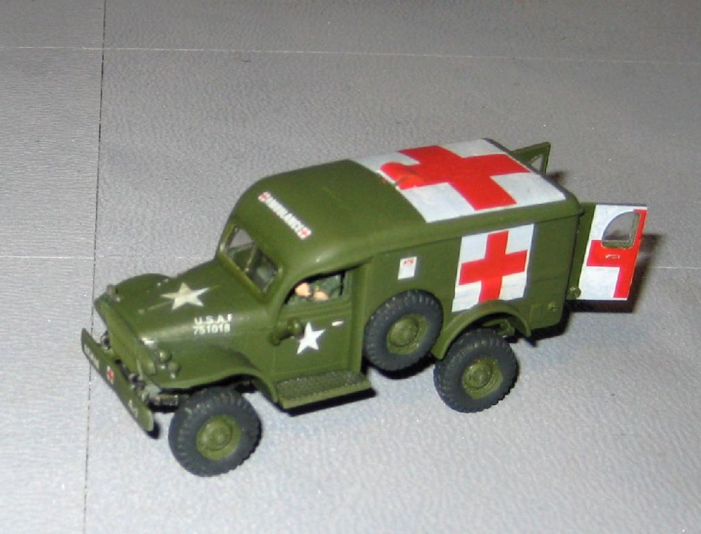 The proud Dodge ambulance can now be placed on the side of your airfield, ready to medevac the pilots of aircraft returning from Mig Alley with holes in them.