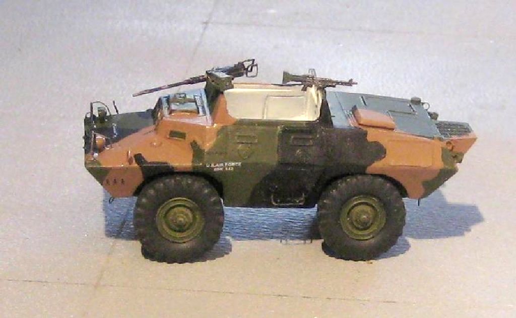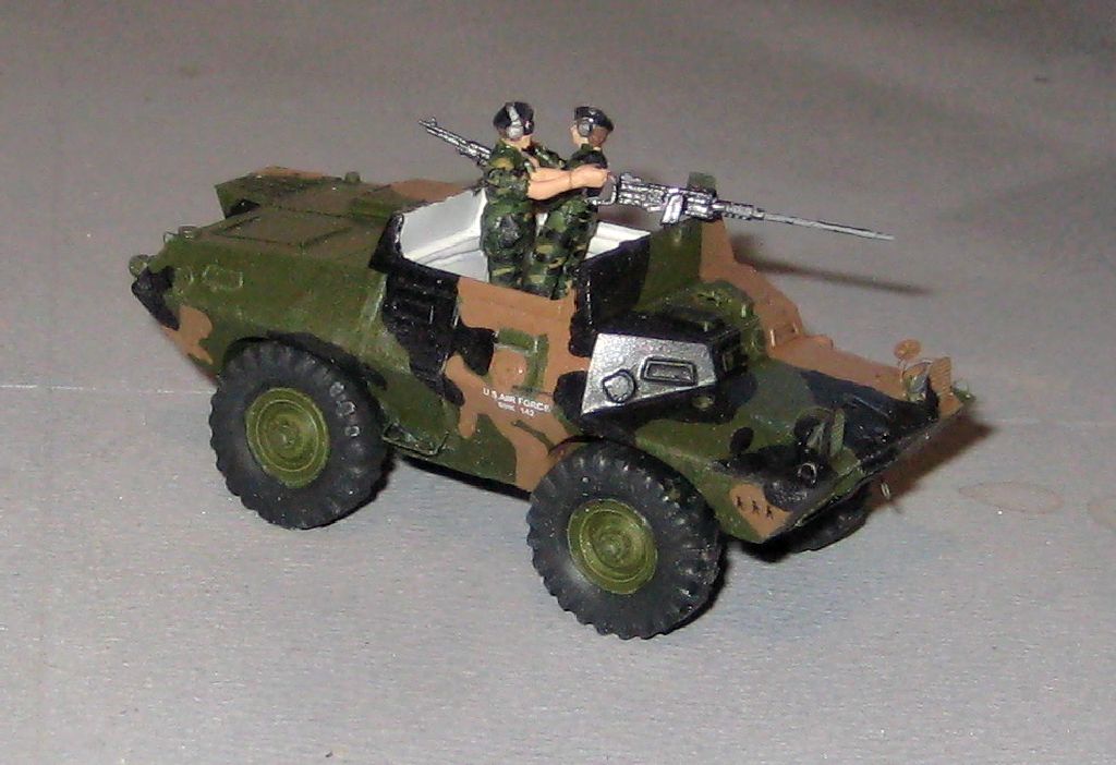 For a long time, one of the must haves for a USAF Vietnam war diorama has been the Cadillac Cage V-100 armoured car, also know as the M-706. The only problem is that most kit makers had the war gamer in mind, who preferred the heavier armed turreted version rather than the wimpier open toped machine gun and USAF version.
