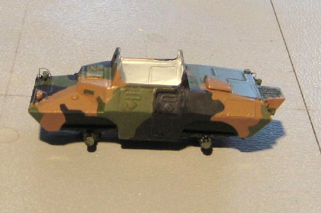 The exterior was coated first in Tamiya Olive Drab spray paint before receiving the tan and black areas in acrylic. When this was satisfactory, the entire kit was coated in gloss and later received its wheels. The small decals now be attached and the entire model could be coated in matt varnish.