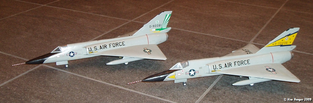 So, in total, I now have a completed fleet of 5 completely different F-106 Delta Darts, using what would politely be called 4 junk kits. While some would argue, that the Hasegawa Kit is long in the tooth, it’s simplicity and solidity make it a viable candidate for new builds and rebuilds, if super-detailing is not required, as only the panel lines need recarving. A clean paint job and nice decals are most effective for a colourful fleet of the Dagger. Repairing mouldy old kits is also a viable solution for generating nice new models for the collection.