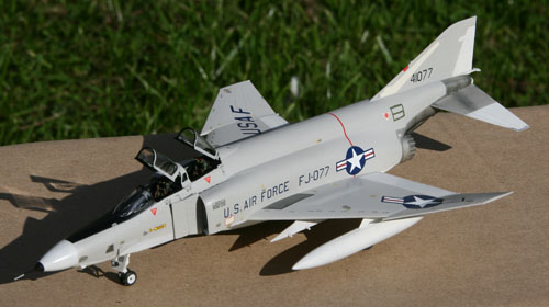 Using a standard new style Hasegawa RF-4C kit I have produced this model from the 10th TRW from RAF Alconbury as seen in 1978 from a photo I found on 5057 Phantoms gallery. This is done in the original Gull Grey and White scheme as when delivered. The photo looks like it has some sort of sealing tape around the photoflash ejectors on the rear of the aircraft, which I have simulated with some paint.