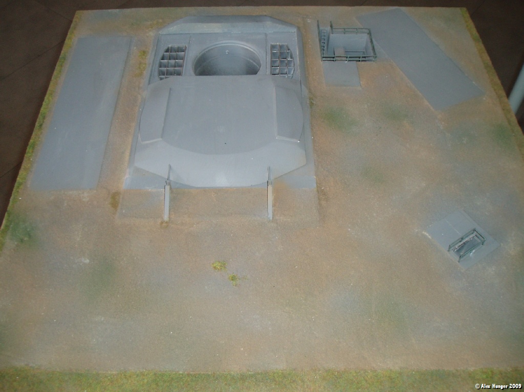 As it was supposed to represent a silo in Arizona, it was lightened with a light airbrushing of beige over the all too green grass to give it that dried and sun bleached look. The available space didn't allow fencing. If I hadn't limited myself to the chosen measurements of 61cm x 61cm, I would have been able to fit the Command Bunkers, retractable antennas and perhaps the fencing and I would have been able to include the fueling platforms at the right distance from the silo and in the right size.