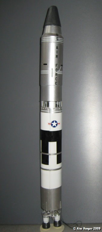 Earlier in 2007, I finally built my first silo for the Minuteman III, but that's another story. Since the early 1980s, resin manufacturers have been springing up all over the shop, so that I was able to mail order the Real Space Models Titan II and the Atlas Missile a couple of years ago. The Titan II works well in 1/72 scale. Unfortunately, Real Space managed to hand the fuel lines of the 2 rocket engines the wrong way. Only a rivet counter would notice this, however. One also has to scratch build and attach a lot of little rods out of paper clips to build the framework of the engine. There are plenty of photos on the web if you search for them. All in all, the missile took 1 weekend to build and looks the part.