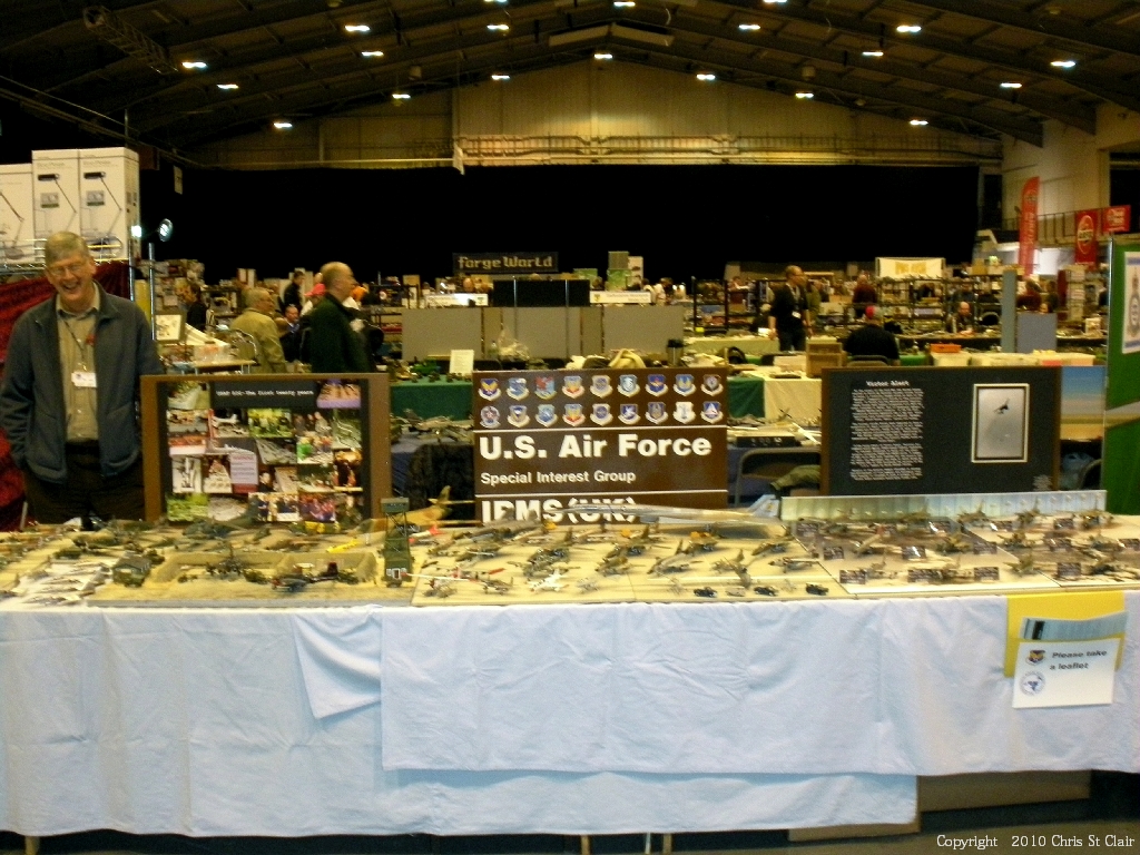 Back too for a flying visit was Adrian Davies now a resident of New York – oooh he’s changed! He’s into RAF Second World War bombers now! Models for our display were provided by Chris St Clair, Alex Hunger, Graham Bullock, Phil Butler, Paul Guppy, Ted Bayliss, Andy Davies (General Melchett), Trevor Williams (Howard of Effingham), Julien Dixon, and Paul ‘Susan’ Irving (who proved to be something of an unwelcome intruder !). Unfortunately Ted and Paul Guppy couldn’t actually make it to Telford due to work commitments and they were missed. Paul ‘Susan’ Irving and myself had an enjoyable stint working in the Kit swap on the Saturday afternoon (helped by a bottle of Jeremiah Weed) and Chris joined me for another stint on the Sunday.