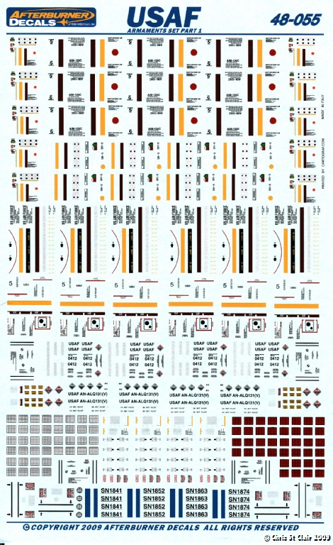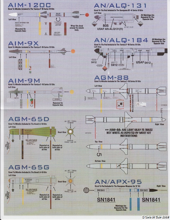This is a fantastically useful sheet from Afterburner. Whilst it is not to 1/72nd scale, it is a good reference source as it contains details of markings for the above missiles and pods.