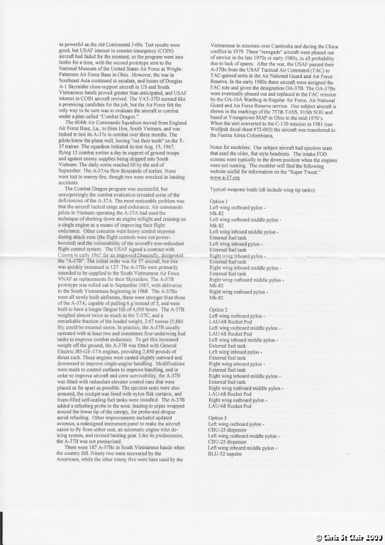 A-37B 68-7927 "IY" from the 757th SOS, 910th SOG based at Youngstown, MAP during 1975. It is in the standard South East Asian (SEA) scheme of FS34079 Dark Green, FS34102 Medium Green and FS30219 Tan over FS36622 Light Grey