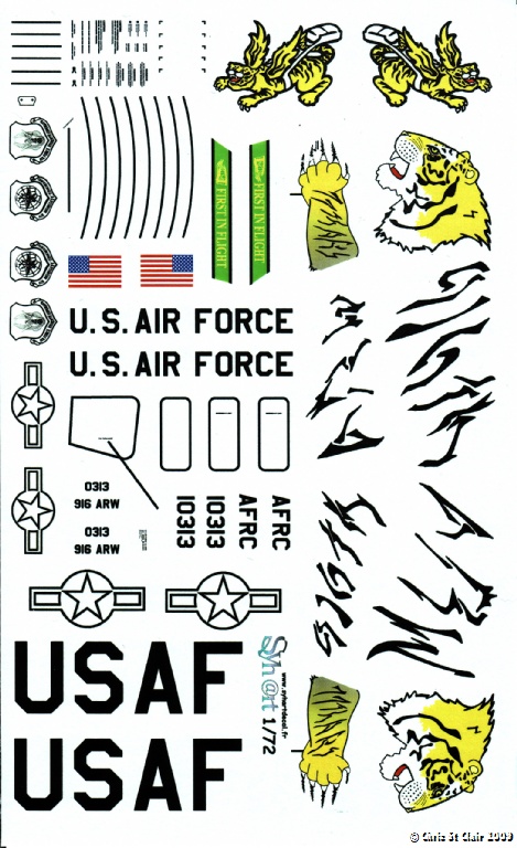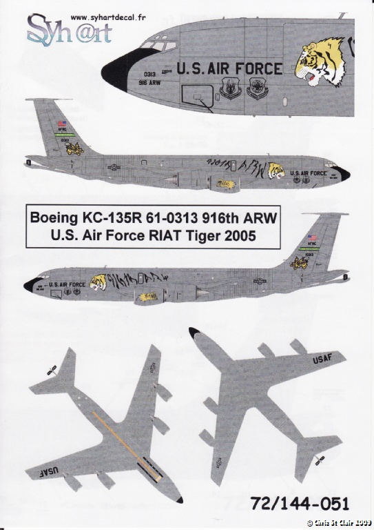 Syhart mainly focus on colourful NATO and European display schemes, so this sheet, covering KC-135R 61-0313 from the 916th ARW is quite unusual for them, although this was a display aircraft marked up for the 2005 Tiger Meet.