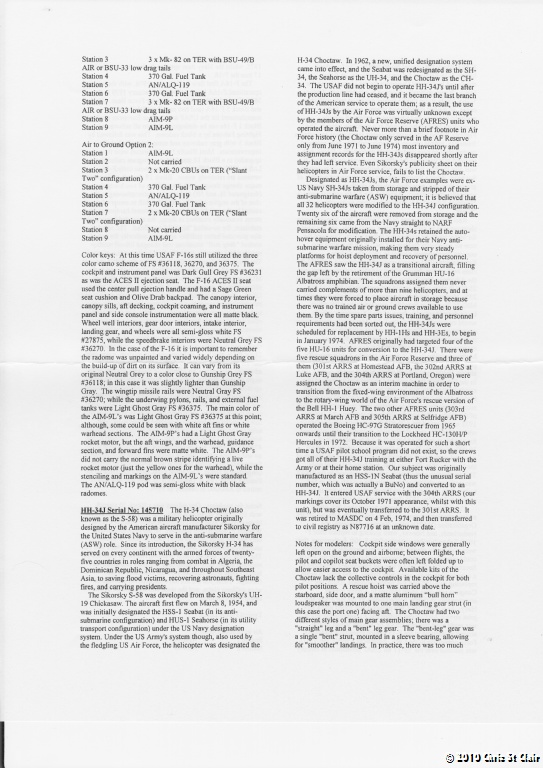 | Types Featured | F-16A, A-7D, HH-34F, C-130E |
