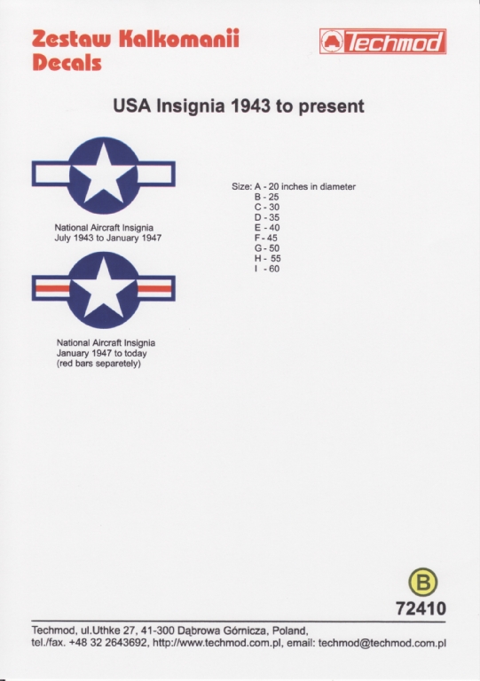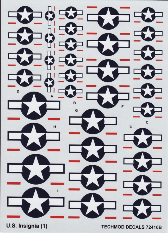 This is a really useful sheet, as it provides US Insignia (Stars'n'bars) for post 1943 aircraft.