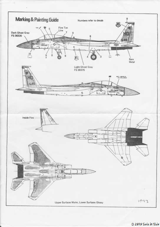 This is one of the original batch of Microscale sheets and covers a single subject - the first production F-15A Eagle 76-049. This was delivered to the 49th TFW and was known as "Holloman's Eagle". It carries the standard Compass Ghost Grey scheme of FS36320 and FS36373, with the "HO" tailcode in black and "HOLLOMAN'S EAGLE" in black on the nose.