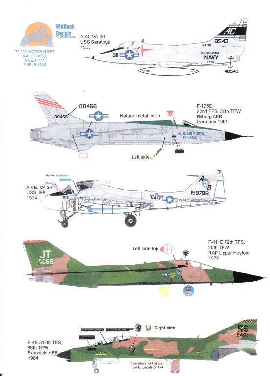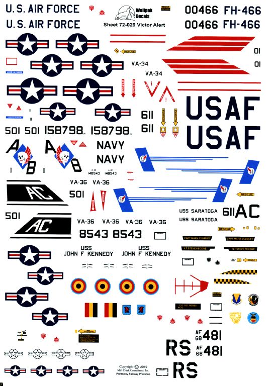 This sheet from Wolfpak decals contains an interesting variety of types used for Victor Alert.