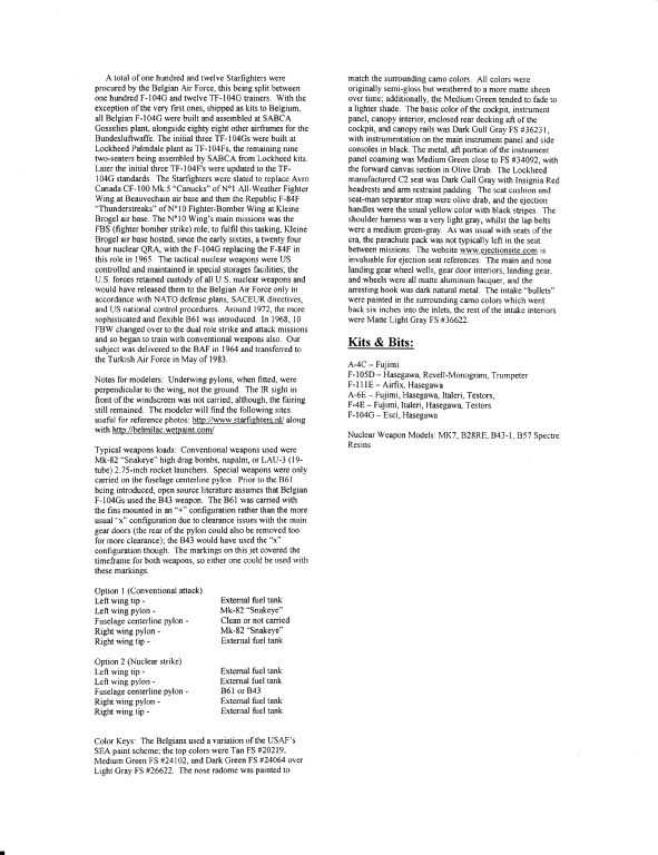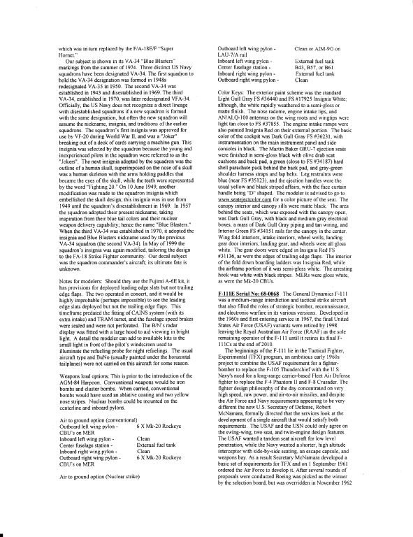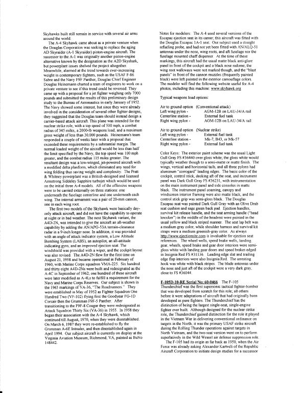 The sheet is printed by Fantasy Printshop, the decal film itself is thin and there is very little overlap of film. As is usual for Wolfpak, the instructions comprise a full colour front sheet with a side view of each aircraft, black & white color schemes and a detailed history of each type with specific information for modellers, including changes needed to the available kits, color call-outs and weapons loadouts.